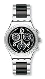 Movimento svizzero al quarzo, vigilanza del vestito, Swatch di 'notte Dream', cronografo, Silver-tone mani luminose, numeri di Silver-tone, i piccoli numeri bianchi e indici sul quadrante esterno, lucido lunetta in acciaio inox è impostato con cristalli, datario analogico, lucido cassa in acciaio, corona e pulsanti di selezione, spazzolato fondello in acciaio inox e coperchio della batteria, resistente all'acqua